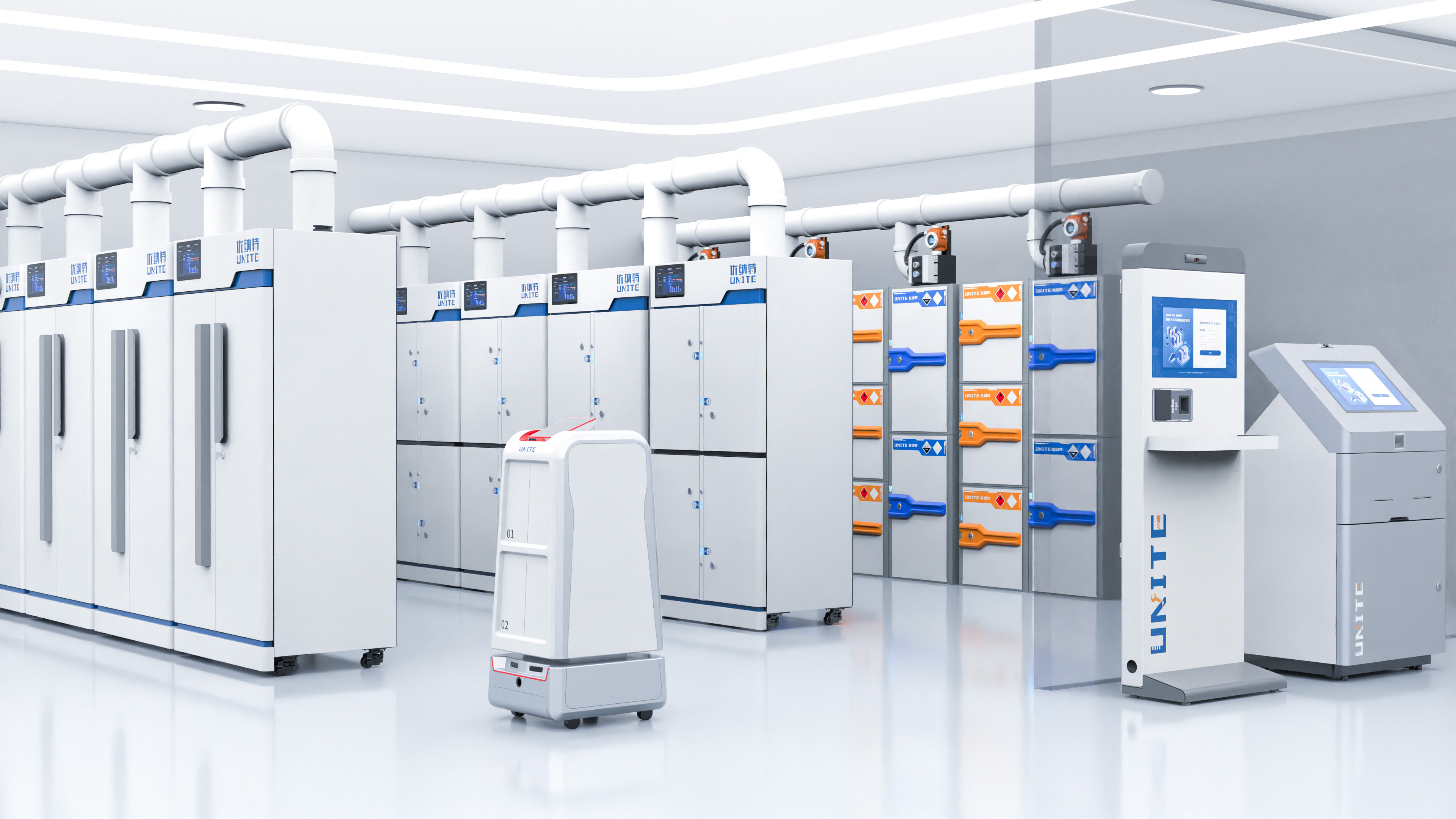 浙江優(yōu)納特自主創(chuàng)新研發(fā)矩陣式物聯(lián)儲存艙,涵蓋試劑危化品、標(biāo)準(zhǔn)品/標(biāo)準(zhǔn)菌、生物樣本、數(shù)字孿生數(shù)據(jù)、自動化無人實驗室、智慧實驗室安全、環(huán)境監(jiān)測、儀器設(shè)備等八大平臺。主營硬件包括:智能試劑安全柜,智能危化品柜,智能試劑柜,危化品安全柜,防爆安全柜,智能易制毒安全柜,智能防火安全柜,智能防爆安全柜,試劑冷藏柜,無人實驗室自動化設(shè)備,自動化機(jī)器人,自動化轉(zhuǎn)運機(jī)器人,機(jī)器臂,智慧無人實驗室,全自動生物樣本庫,標(biāo)準(zhǔn)品常溫柜,標(biāo)準(zhǔn)品冷藏柜,標(biāo)準(zhǔn)品雙控溫柜,智慧實驗室管理系統(tǒng),實驗室信息管理系統(tǒng),實驗室物資管理系統(tǒng),實驗室安全教育系統(tǒng),無人實驗室智慧化管理。通過軟硬件結(jié)合,為實驗室物資提供物理安全防護(hù)的同時掌握物資存取、定位、統(tǒng)計等全生命周期動態(tài)。